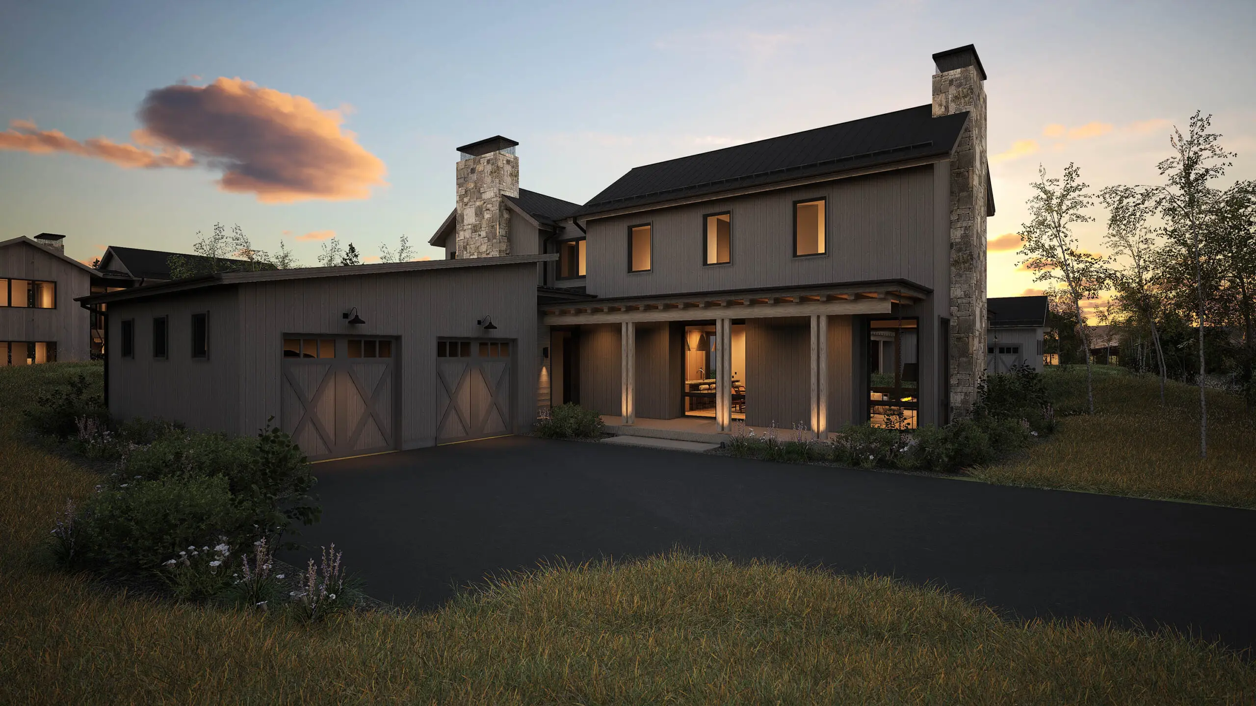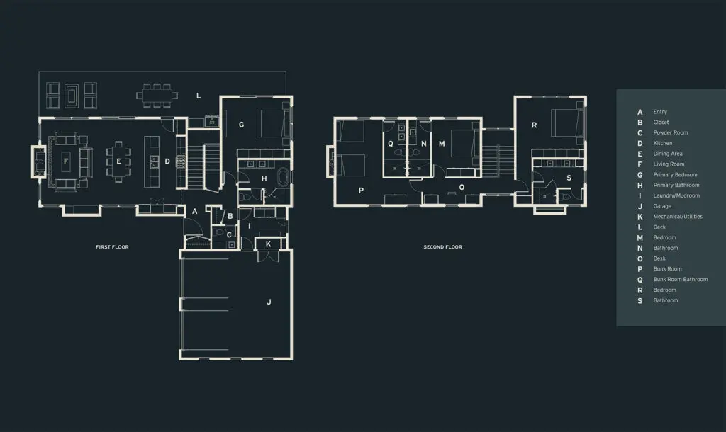 Blending modern comfort with thoughtful separation of space, the 2,800-square-foot Cascade Cabin is designed for flexibility. The main-level primary suite offers everyday ease, while three upstairs guest rooms—one with the option to convert into a secondary lounge—create space for hosting or retreating. A built-in desk upstairs adds functionality without disrupting the flow of the home. The open-concept kitchen and living area extends onto a large covered deck, perfect for taking in the views or enjoying a quiet evening outdoors.